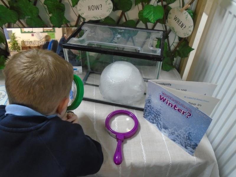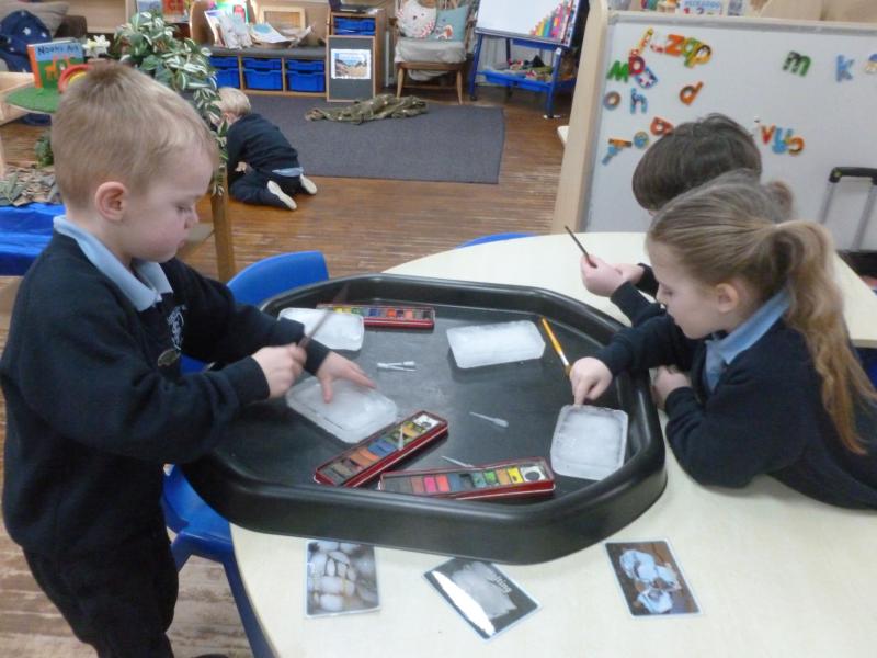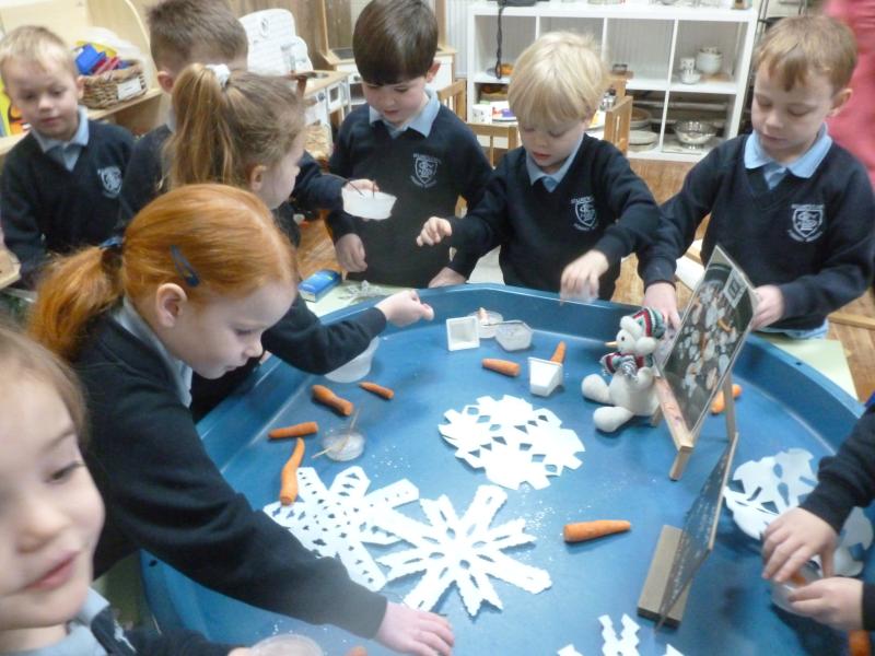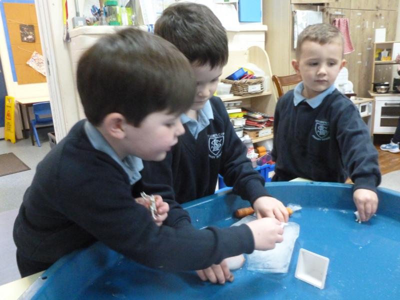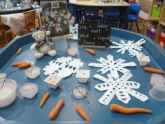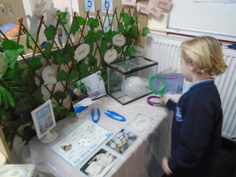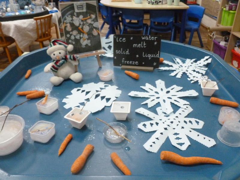 On Monday, the children were greeted with an “icy” surprise as the classrooms were transformed into a winter ice world. We spent the afternoon talking about the seasons and exploring winter in more detail. The children enjoyed discussing the weather we see during winter and learning about the different clothes we need to wear as the temperature drops.