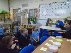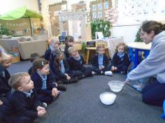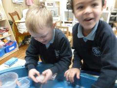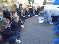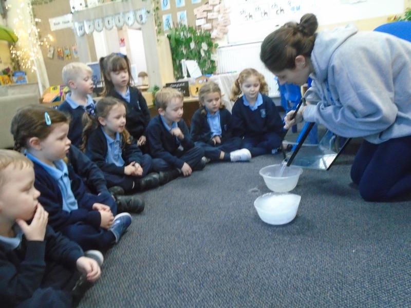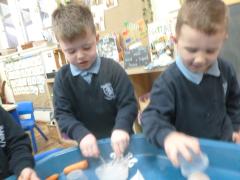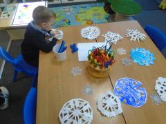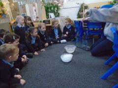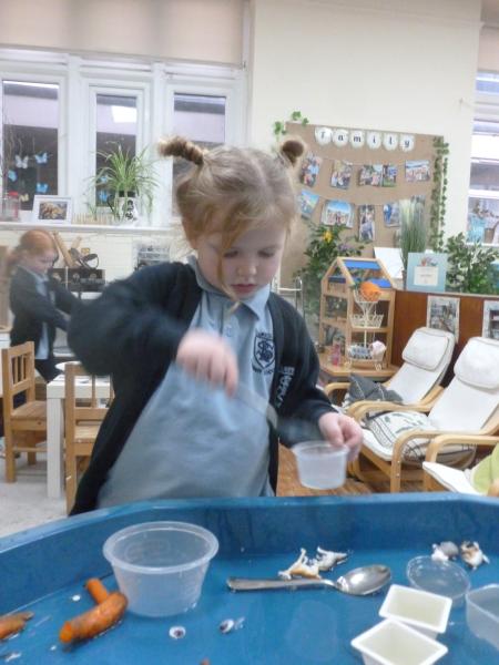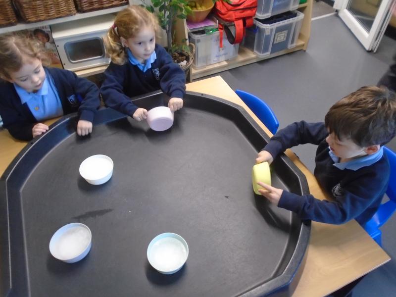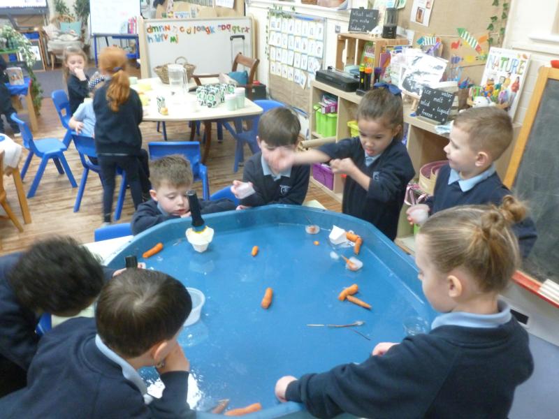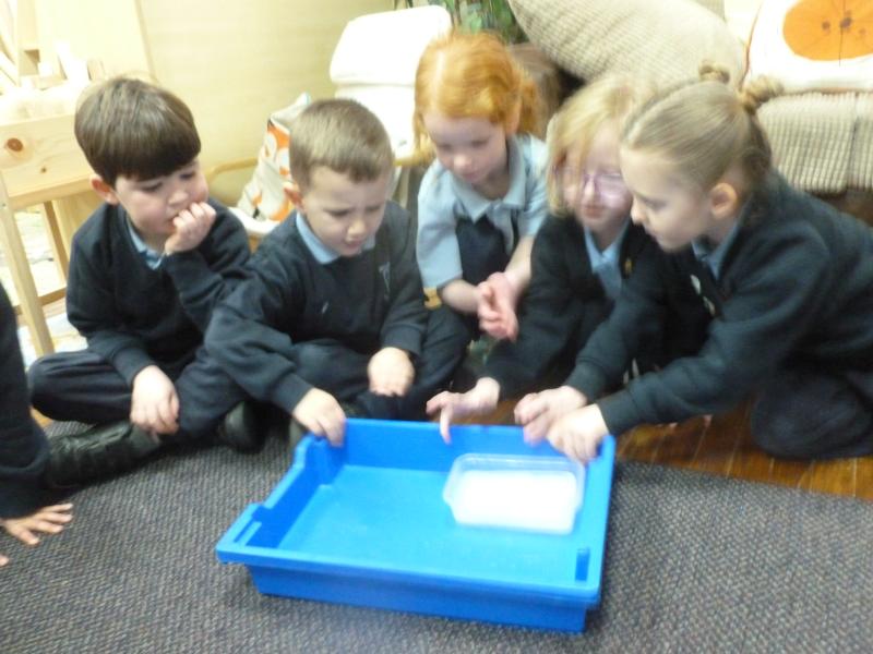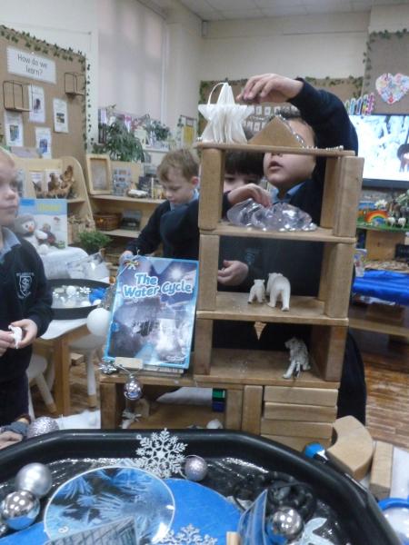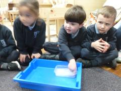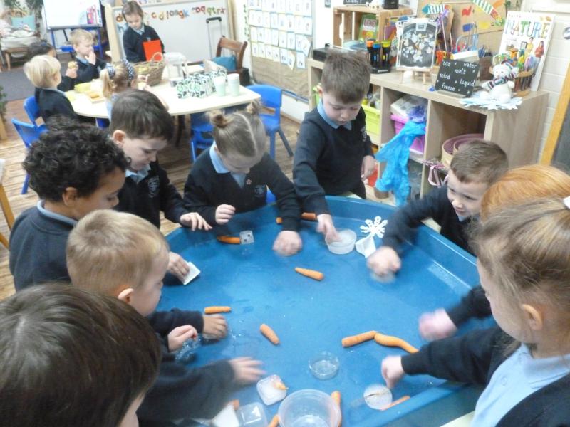 On Monday, the children were greeted with an “icy” surprise as the classrooms were transformed into a winter ice world. We spent the afternoon talking about the seasons and exploring winter in more detail. The children enjoyed discussing the weather we see during winter and learning about the different clothes we need to wear as the temperature drops.