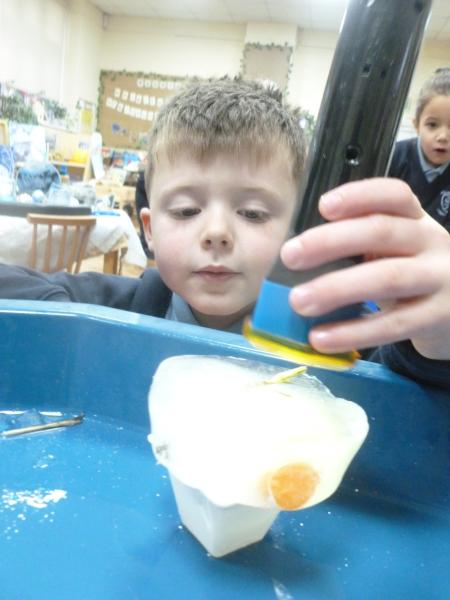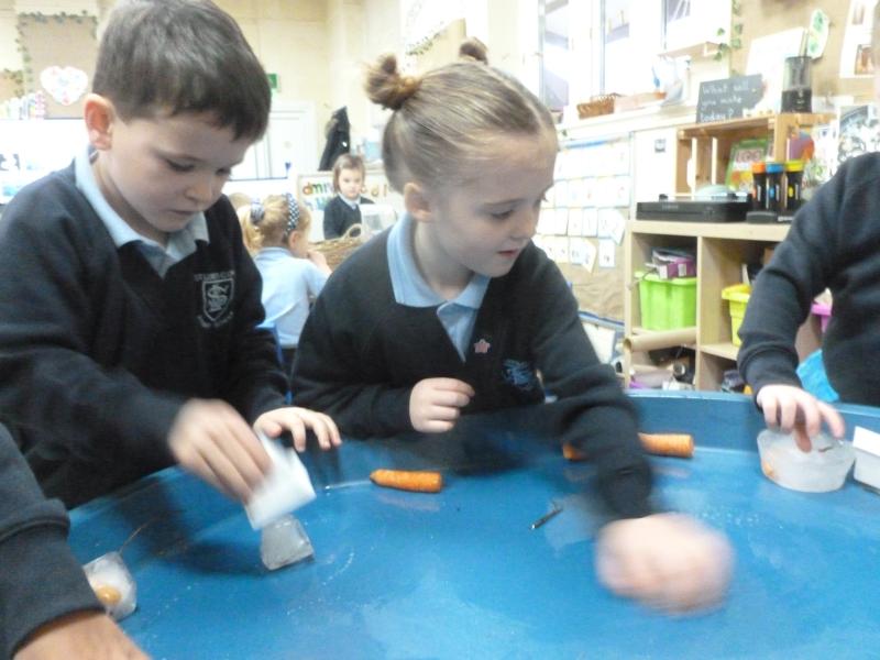 On Thursday, we turned into scientists and carried out our very own ice investigation. Working in teams, the children explored different places around the school to find where ice would melt the fastest. They chose warm locations and carefully tracked the progress throughout the afternoon. At the end of the day, we gathered together to discuss our findings and discover which place was the warmest. We found that the least amount of ice melted outside, and the most ice melted in a bowl of warm water.