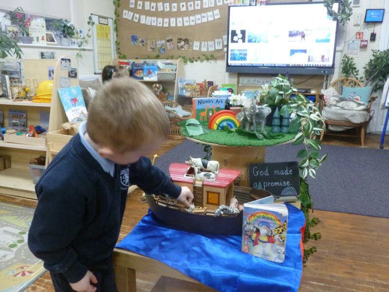 On Tuesday, our focus moved to our new Bible story, Noah’s Ark. The children were captivated by the story and enjoyed learning about how God chose Noah to help make the world right again after people began behaving badly. They particularly loved listening to “the animals went in two by two” and exploring the story further during their play and provision time.