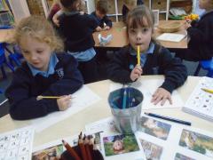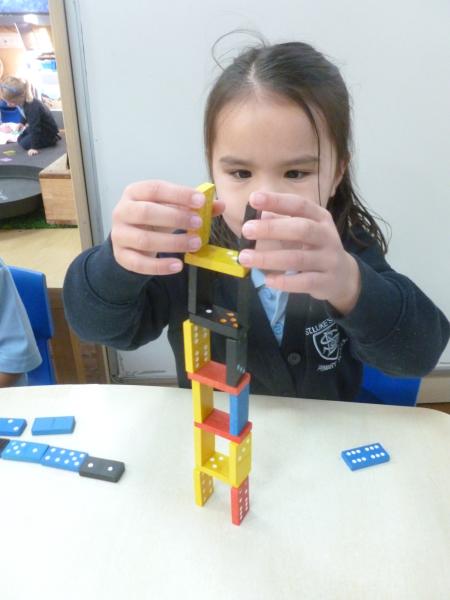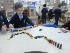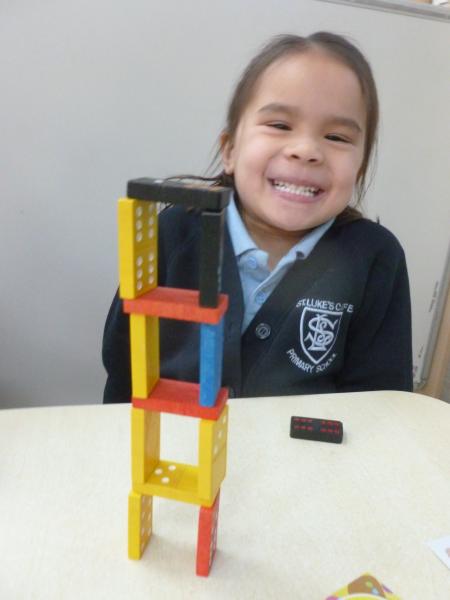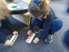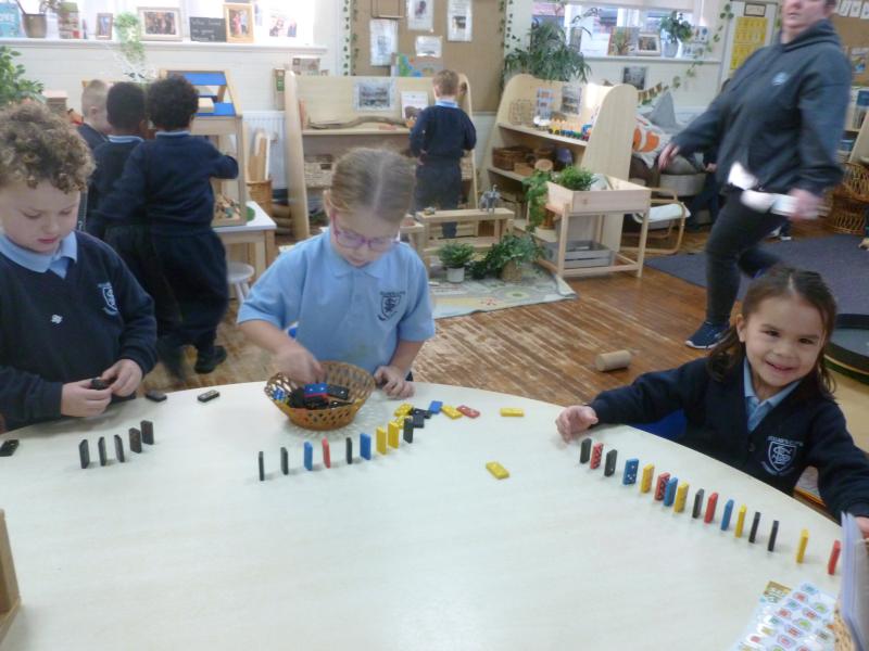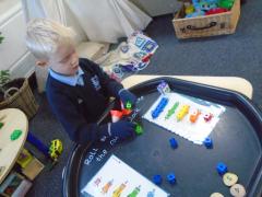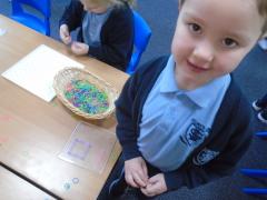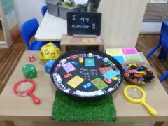 This week in Maths, we have been getting to know Number 5. The children practised subitising 4 and 5 and explaining the smaller groups they could see within these numbers, such as 3 and 2 or 2 and 2. We explored one more and one less, sang Five Little Speckled Frogs, and used five frames in provision to represent what happens in the song. The children also loved using currant buns in a baker’s shop role play to deepen their understanding.