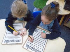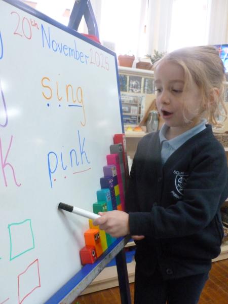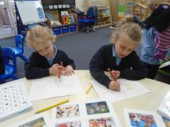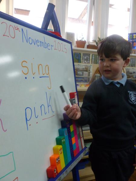 We also introduced the children to Fred Fingers to support early writing. Fred Fingers helps children pinch the sounds they need in words before writing them down. You can watch the video below to see the technique in action and have a go at home with words such as: