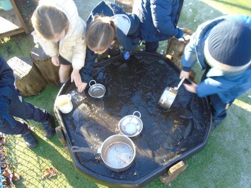 Thursday morning brought a surprise – our first experience of ice in the ROLA this year! A sheet of ice had formed overnight, and the children were amazed to touch it, explore the cracks, and notice the shapes created when it broke. We wondered together whether it would all melt by home time.