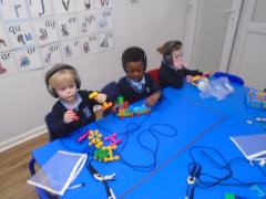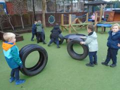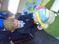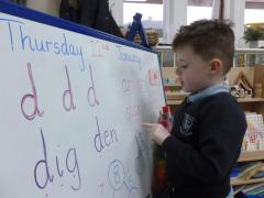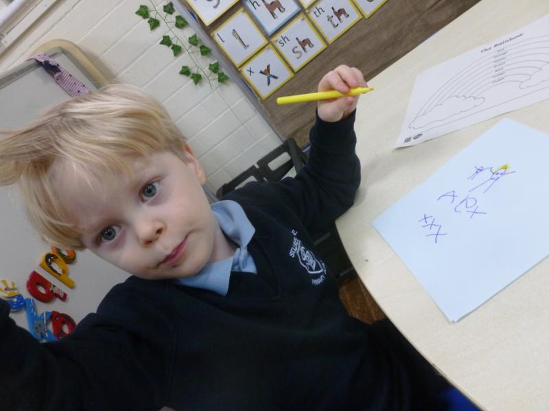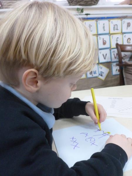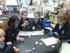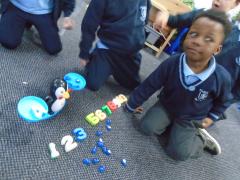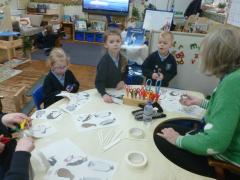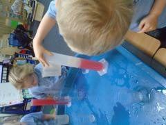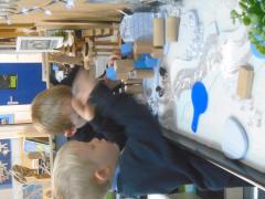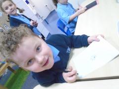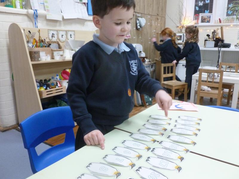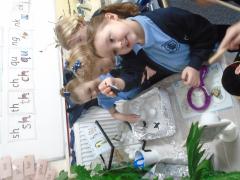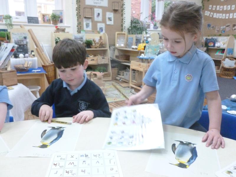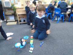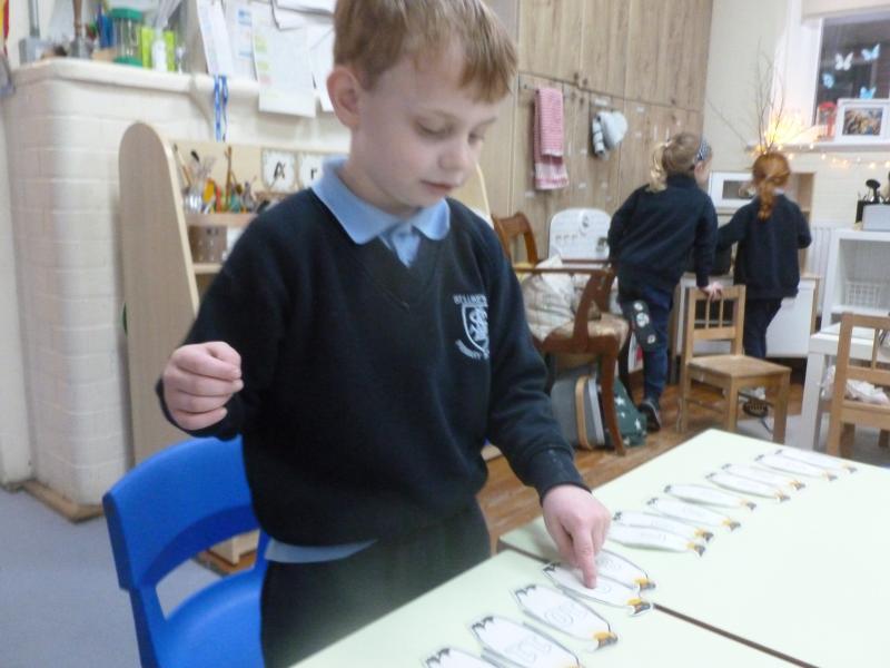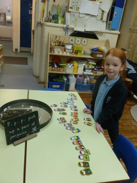 We compared the capacities of different containers and investigated how much water small, medium and large containers can hold. The children have loved filling and pouring this week. In the afternoon, we were very impressed with the children’s penguin labelling. They carefully pinched their Fred Fingers to find the sounds they needed to label parts of the Emperor Penguin.