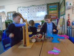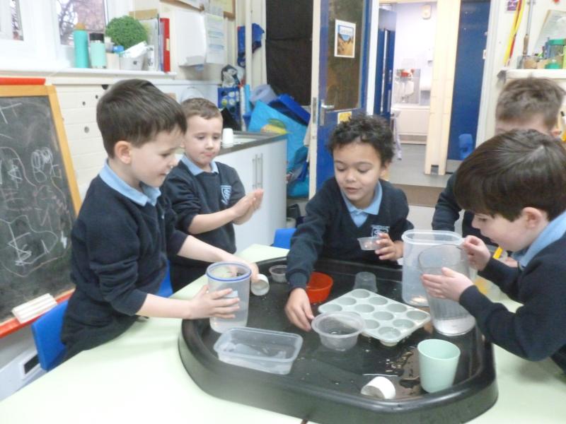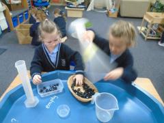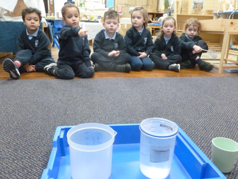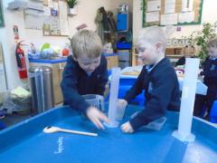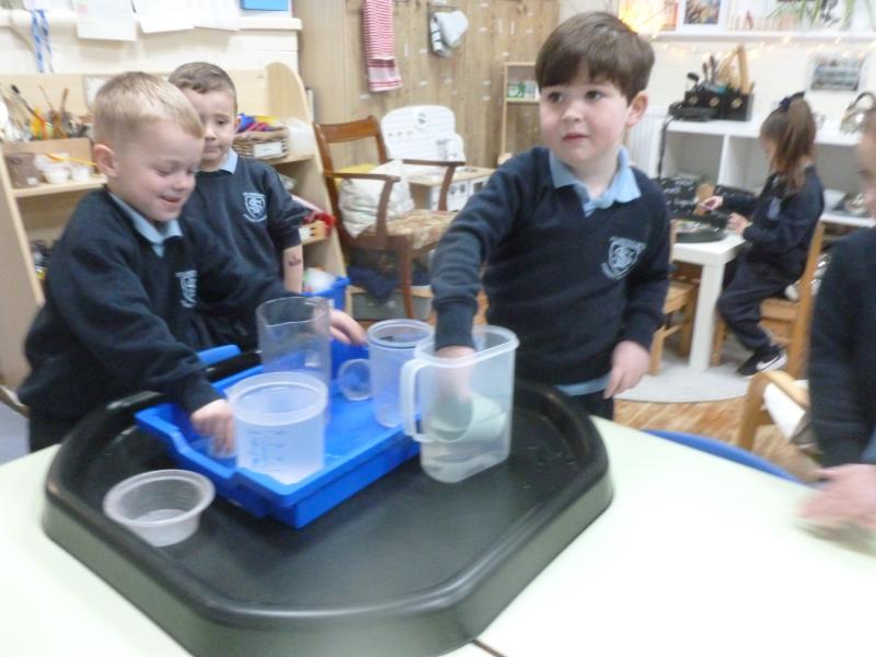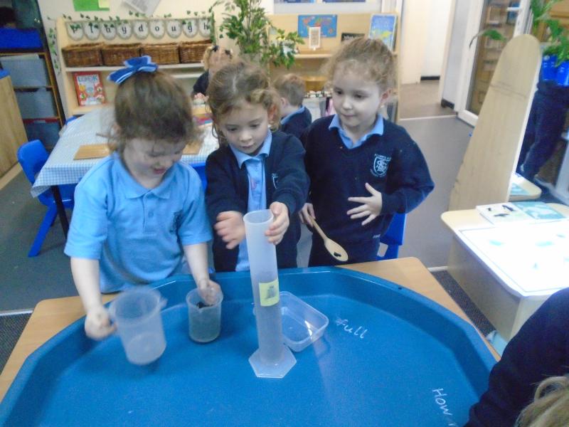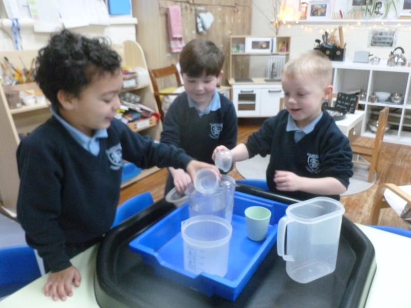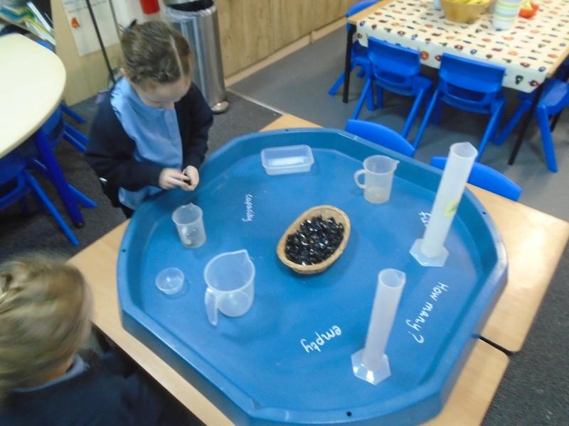The children explored capacity, building on their understanding of full and empty. Key questions included: