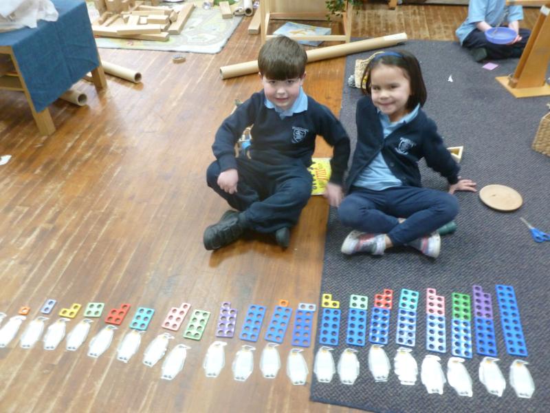 We introduced the children to the terms weight and mass. The children began using balance scales and learning how to distinguish between different quantities on either side. We also learnt that Antarctica is the coldest place on Earth. The children loved learning the Continent Song — why not have a little listen together at home: