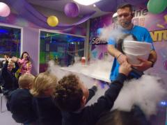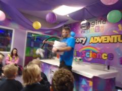 We began by making slime, using our “muscles” for some super slime spinning! Next, we visited the Science Lab where Scientist Matt amazed us with dry ice experiments. We learned a brand-new word — sublimate — describing how solids turn directly into a gas. Matt even made us all a beautiful bath bomb to take home.