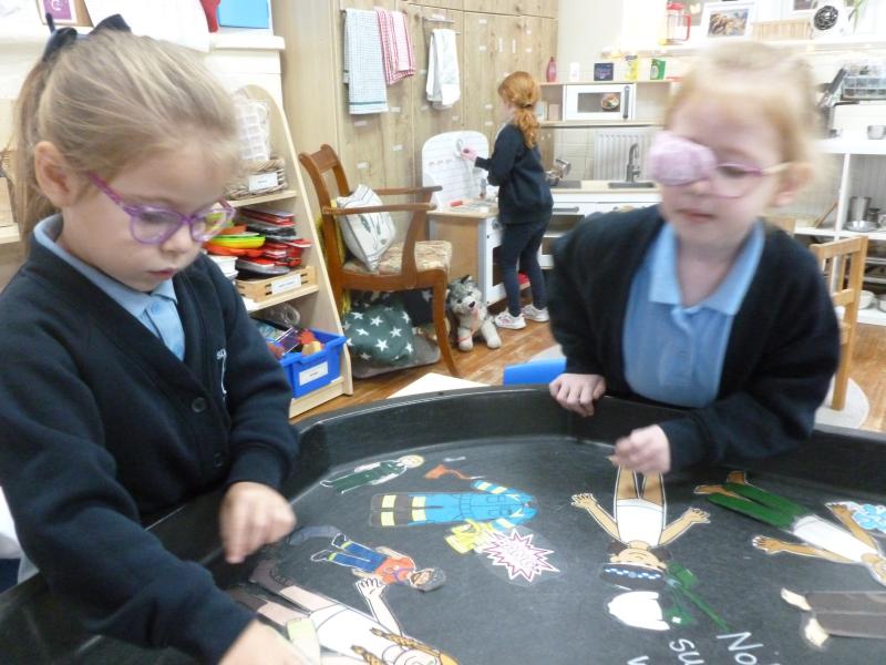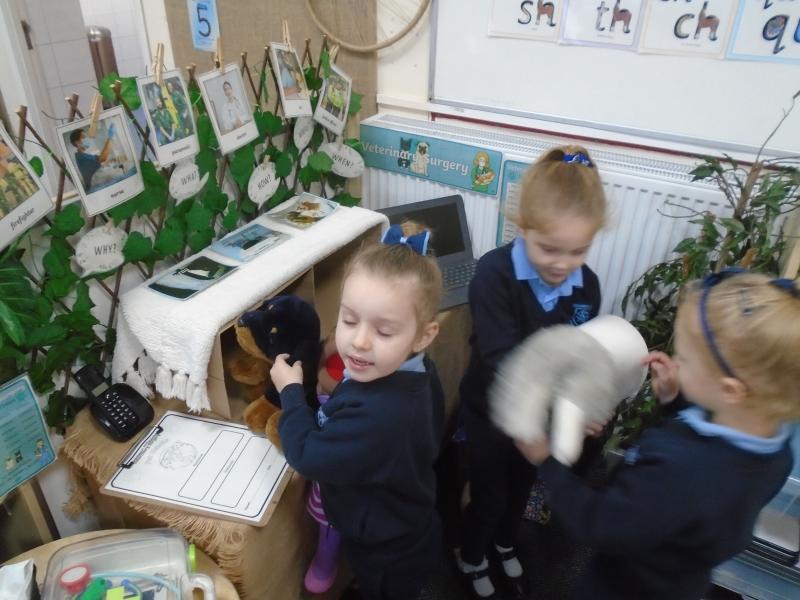 On Monday, we had a nice warm welcome back after a rainy weekend! The children settled in beautifully and were thrilled to explore new role-play opportunities. Our classrooms became a busy animal care centre as the children learned all about the role of a vet and the many ways we can help look after animals. Sand Dunes classroom turned the focus back to police officers and how they help us.