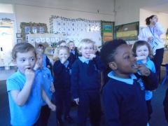 Finally, on Friday… a highlight of the week was a visit from a real dentist! The children listened attentively and impressed us with their confident questions and growing knowledge about how to look after their teeth. Each child has brought home a new toothbrush and toothpaste so they can put their new tooth-care skills into practice.