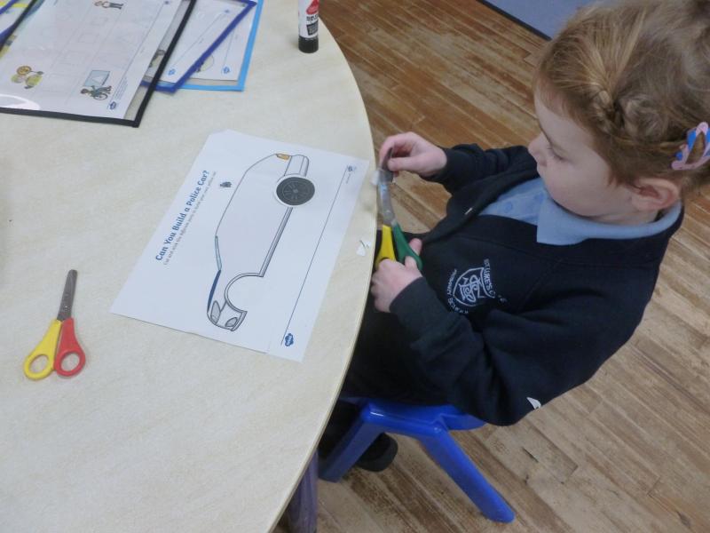 On Wednesday, we learned more about police officers and how they keep us safe and care for our community. We also focused on enhancing our scissor skills, practising how to hold scissors correctly, make careful snips in paper, and follow lines in different directions.