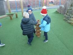 On Tuesday, we continued our learning about the number 5, exploring how smaller numbers can be found “hiding” inside it. We carried this into our outdoor play with a fun-filled game of hide and seek—perfect for reinforcing our learning while keeping active. The children furthered their learning later on in the week, when we introduced them to ‘dice games’, they loved using the dice in their play. Why don’t you get your dice out at home, roll it, and do so many actions for the number it lands on. We enjoyed 6 jumps, 5 claps, 4 hops etc.