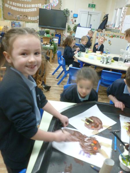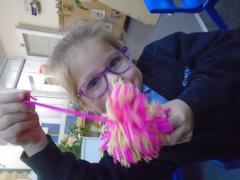 On Wednesday, the children enjoyed learning about the stages of swimming and watching an amazing clip of Paralympic swimmer Ellie, who taught the children all about the different swimming strokes. We looked more closely at what each stage requires before moving on to the next. The children also enjoyed crafting, making pom-poms, Gruffalo masks and painting using forks.