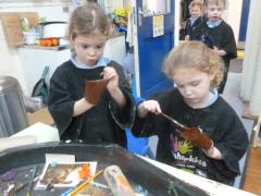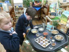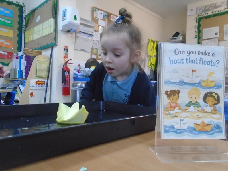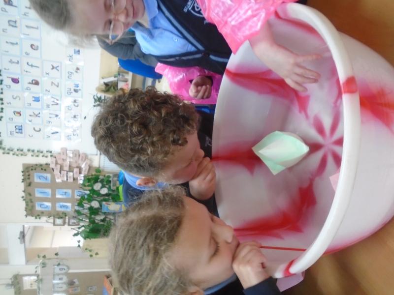 On Thursday, the children explored colour mixing and floating and sinking. They were very interested in learning what makes things float and what makes things sink. We had a crafty afternoon making our own boats and sailing them on water—we even used straws to blow the boats along!