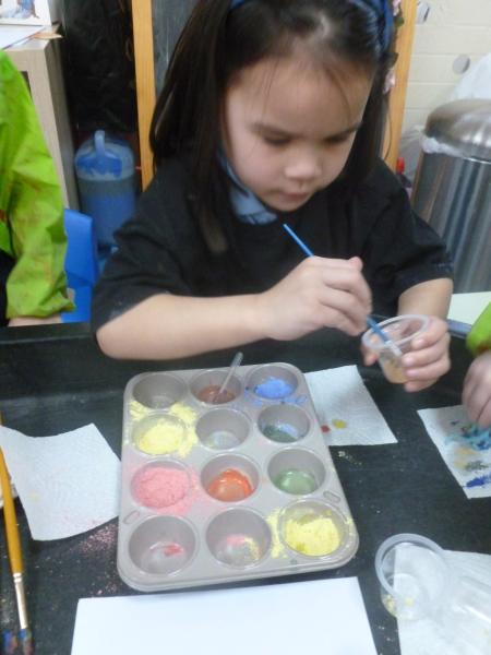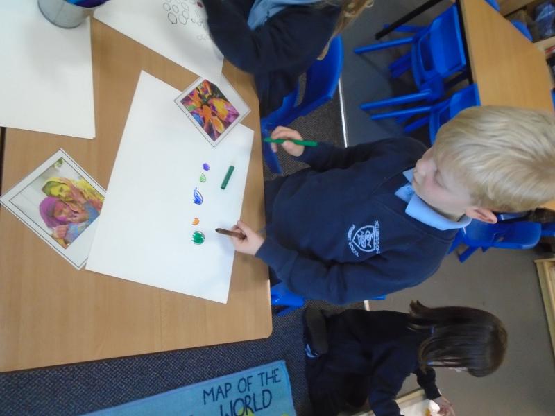 On Wednesday, we learned all about Holi. The children absolutely loved discovering that Holi is a Hindu festival celebrating spring, love and new life. Known as the Festival of Colours, it marks the end of winter and the arrival of spring. We learned how families may celebrate with religious ceremonies, dancing, singing, and by throwing brightly coloured powder paint and water. In provision, we had lots of fun experimenting with powder paints, pens and watercolours to create our own colourful masterpieces!