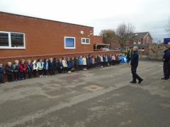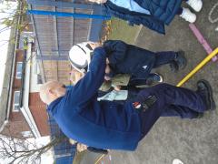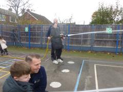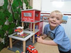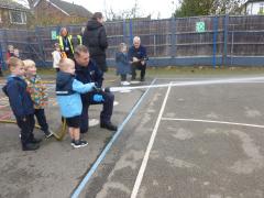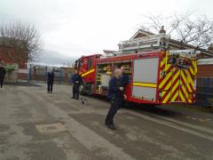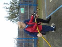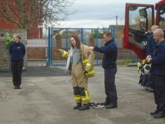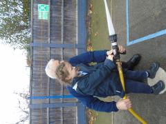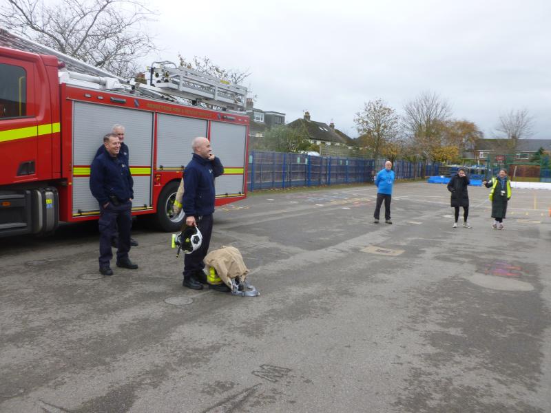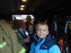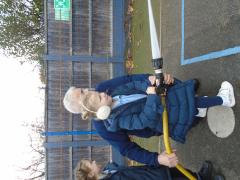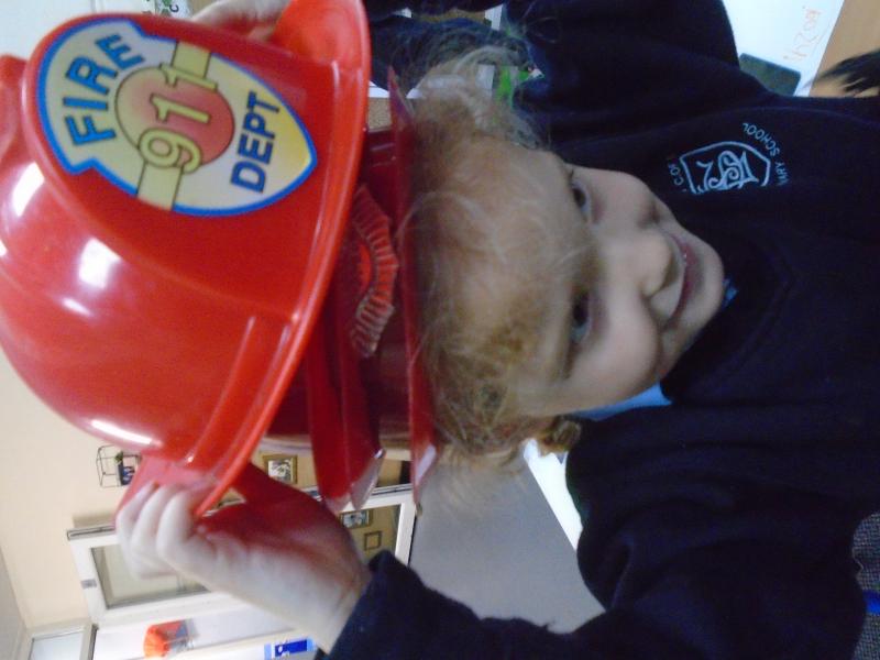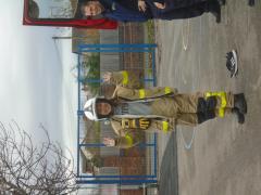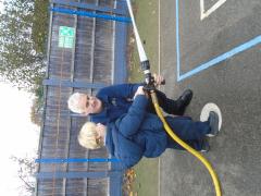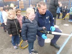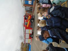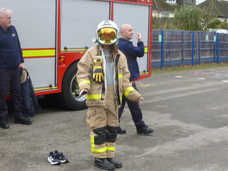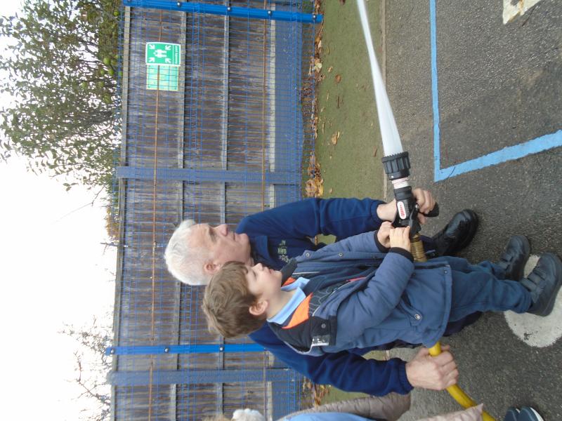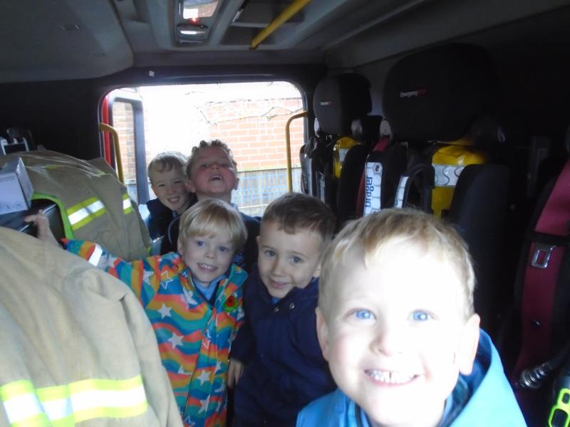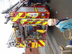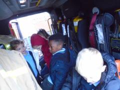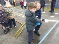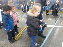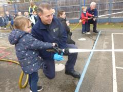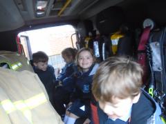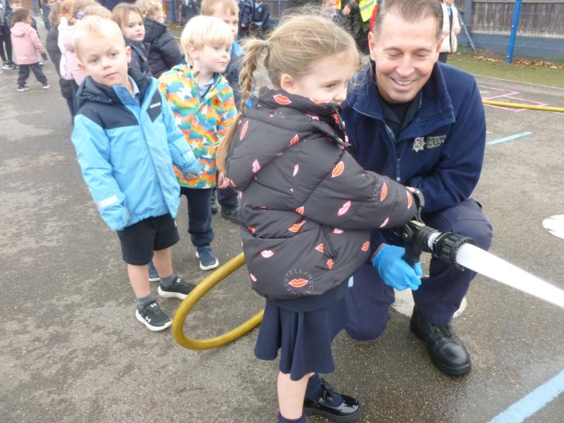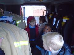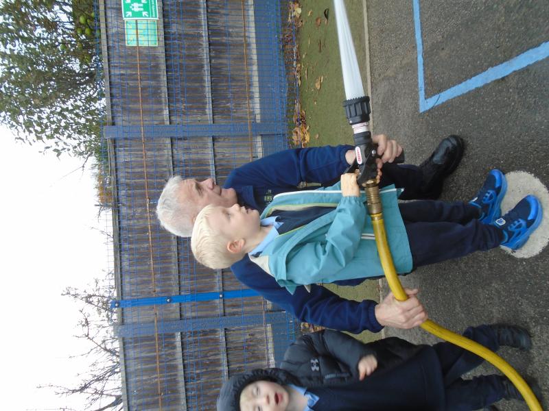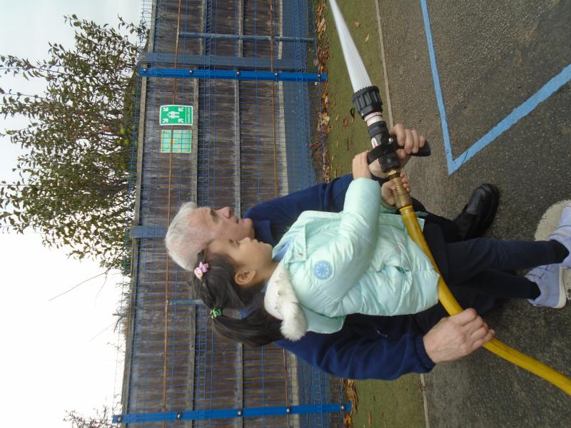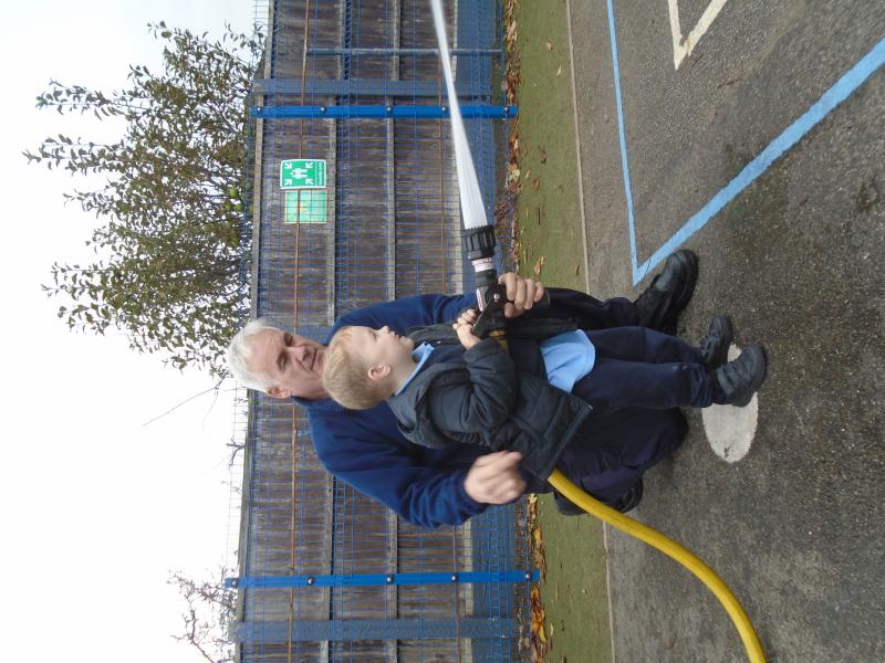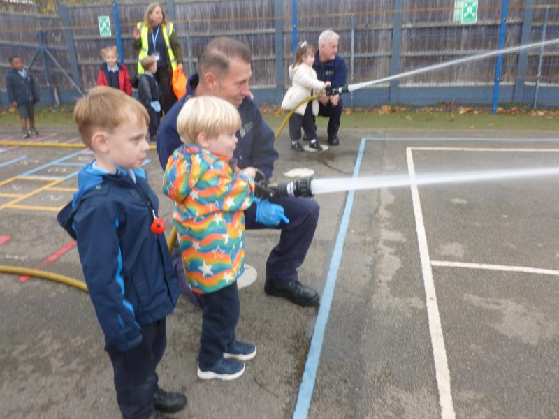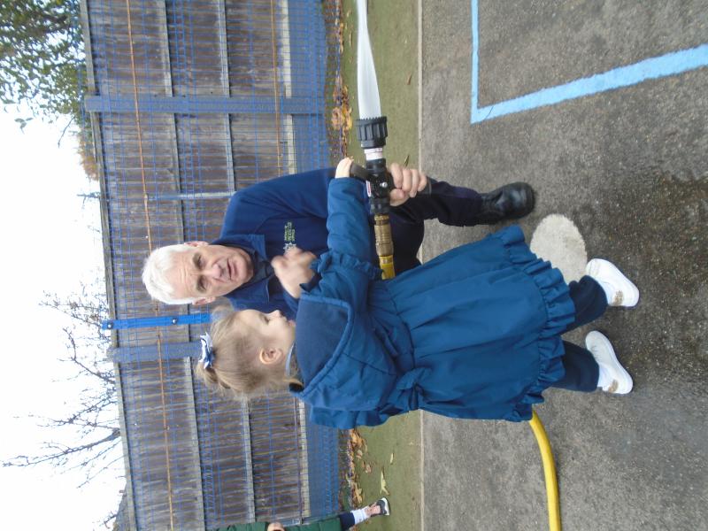 The crew showed us the fire engine and all the equipment they use — and everyone even got to have a go with the hose! The children enjoyed trying on the very heavy helmets and sitting in the fire engine before the crew were called out to an emergency.