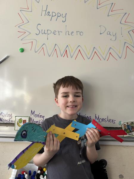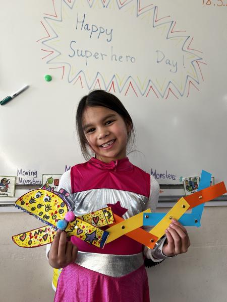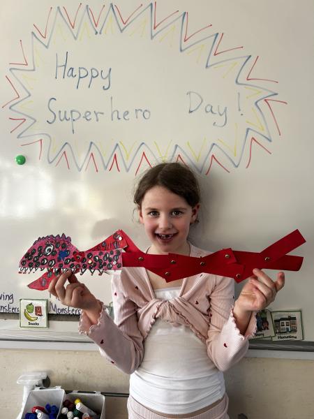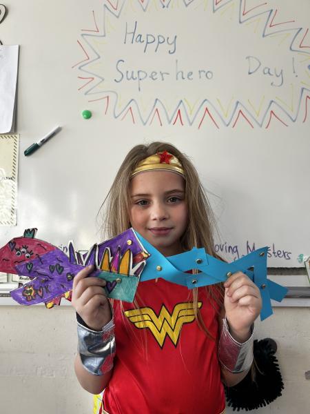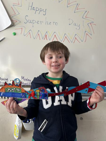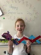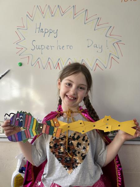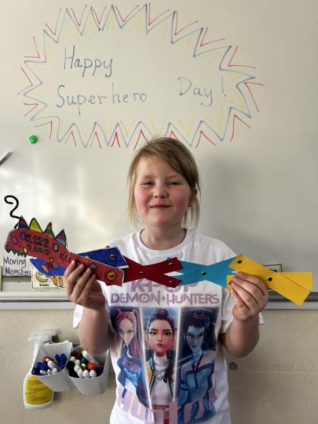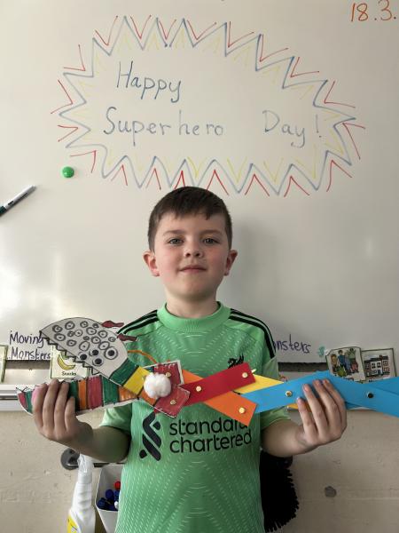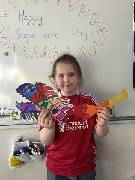 During DT, the children enjoyed exploring linkages and levers and designed their own moving monster. On Superhero Day, the children loved making their moving monsters and we were very impressed with their careful cutting and perseverance making and linking the linkages so that their monster moved. Very impressive and colourful moving monsters by the end of the day! Superhero Day also brought lots of fun team games including pass the hoop whilst holding hands, cross the swap and lining up in height order without talking.