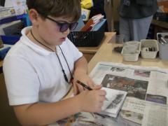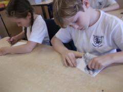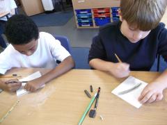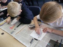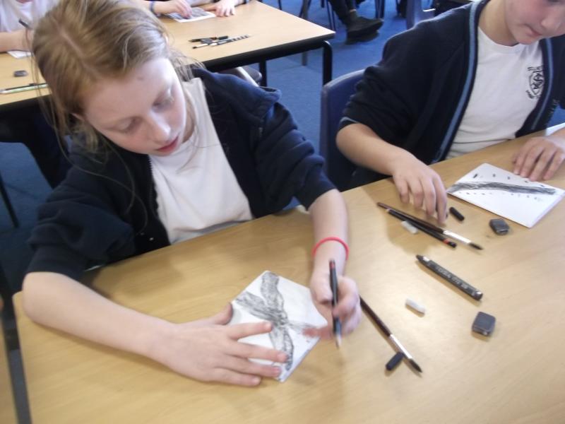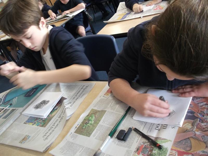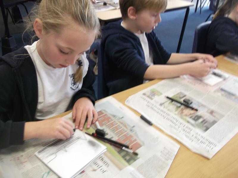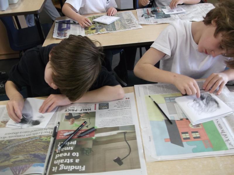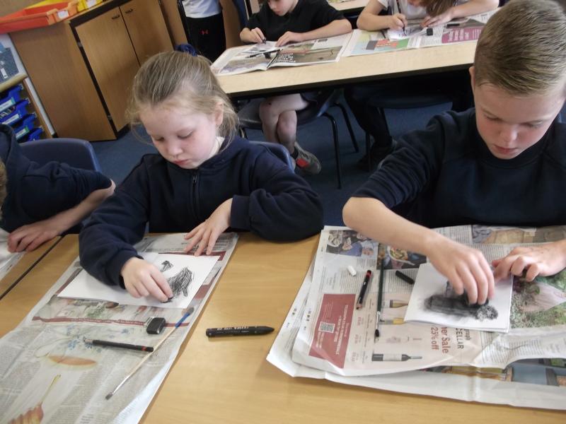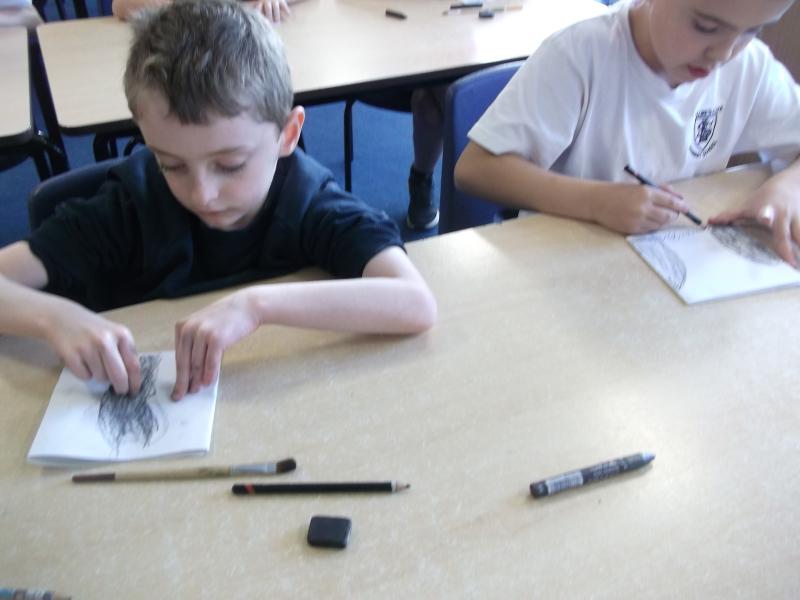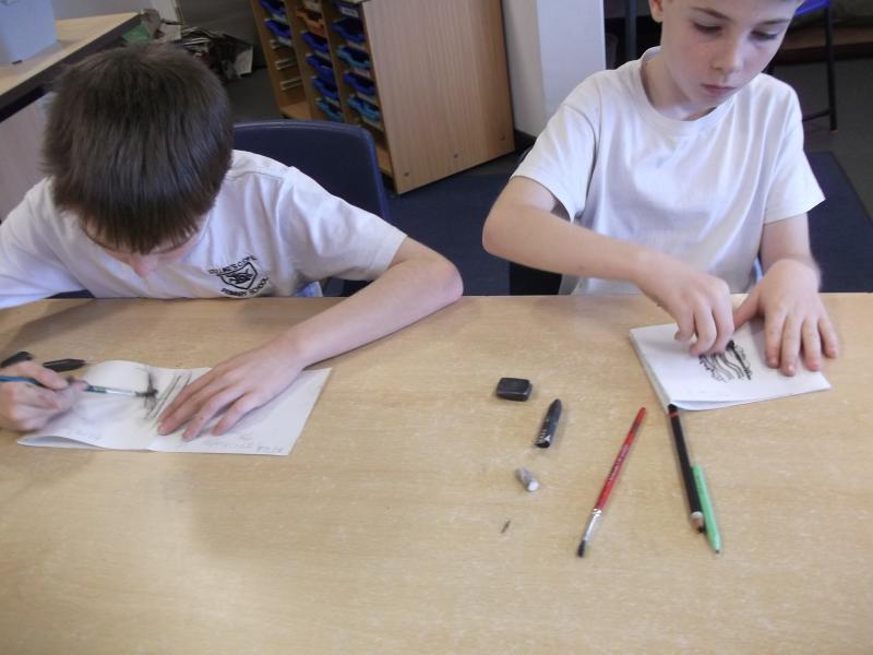 In Art, the children have continued working on their concertina booklets. In their booklet, they have been completing charcoal sketches, using vocabulary from the River book as a stimulus.
