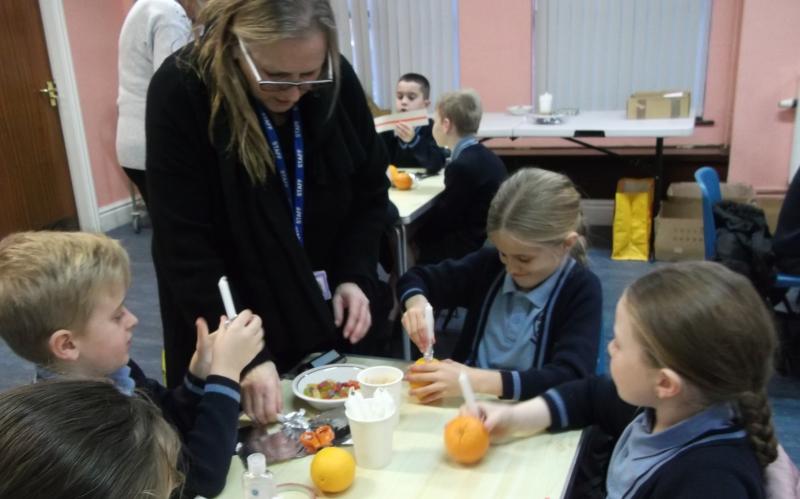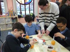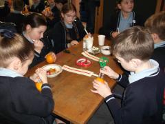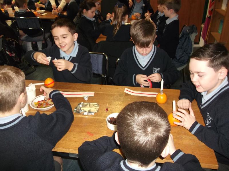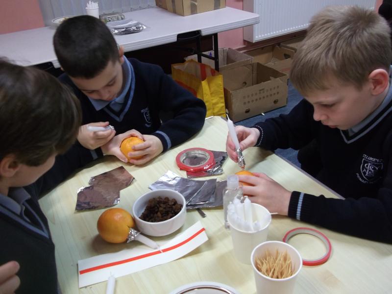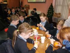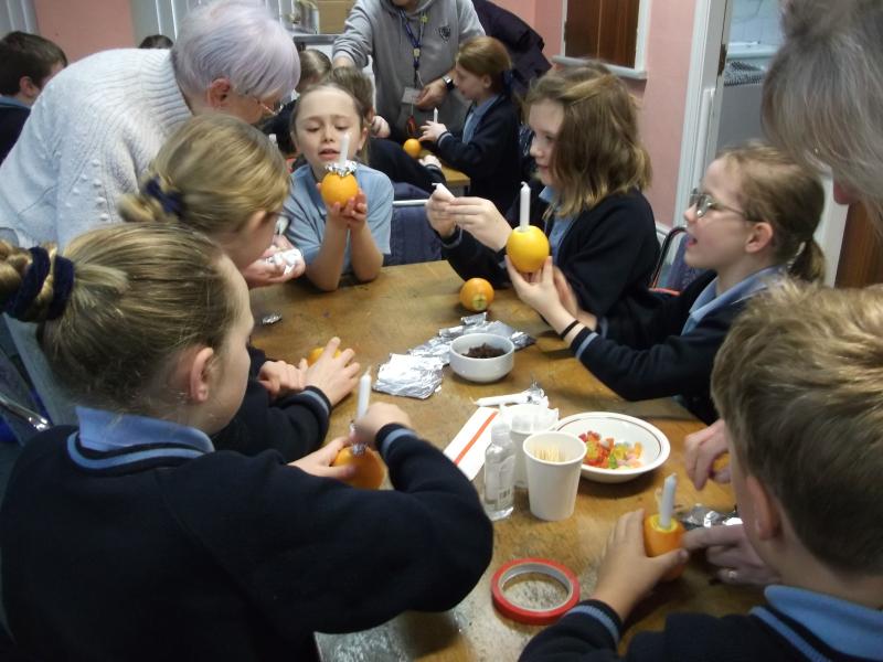 Later in the week, they excitedly walked to church again and met with Mat, were they helped to make Christingle’s. They managed to make 175 of them, ready for the service on Sunday.