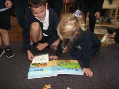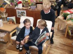 The children loved their first proper meet up with their buddies, before they walk to church to listen to Year 3’s Harvest Service on Monday.