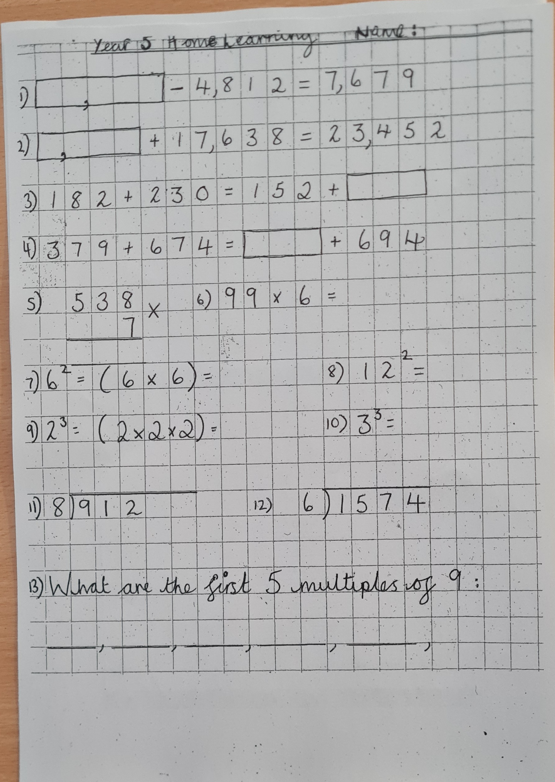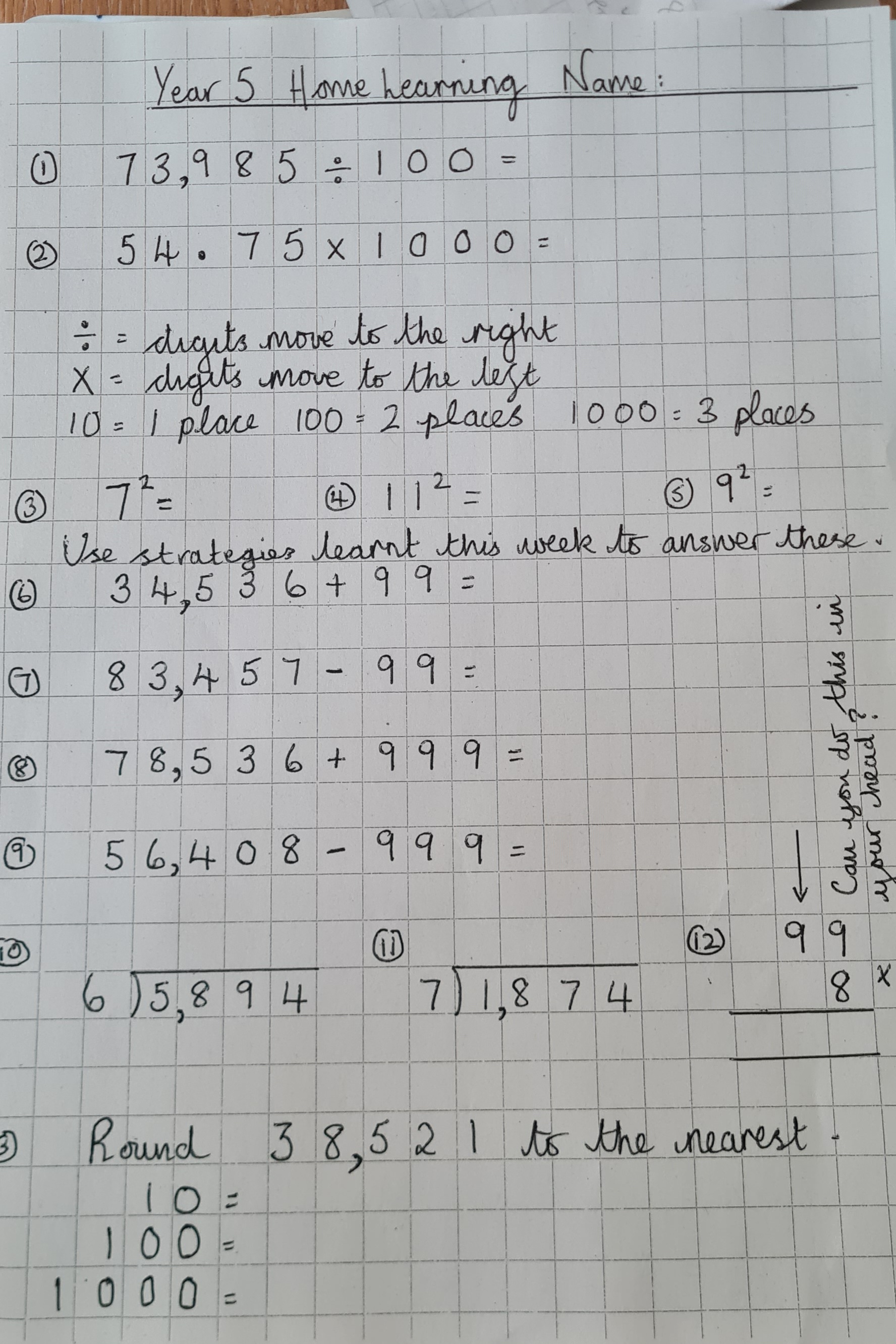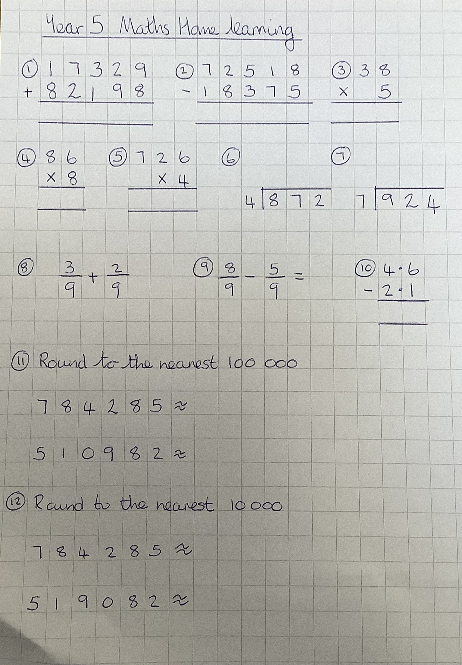 - One piece of maths arithmetic (provided both digitally and as a hard copy)