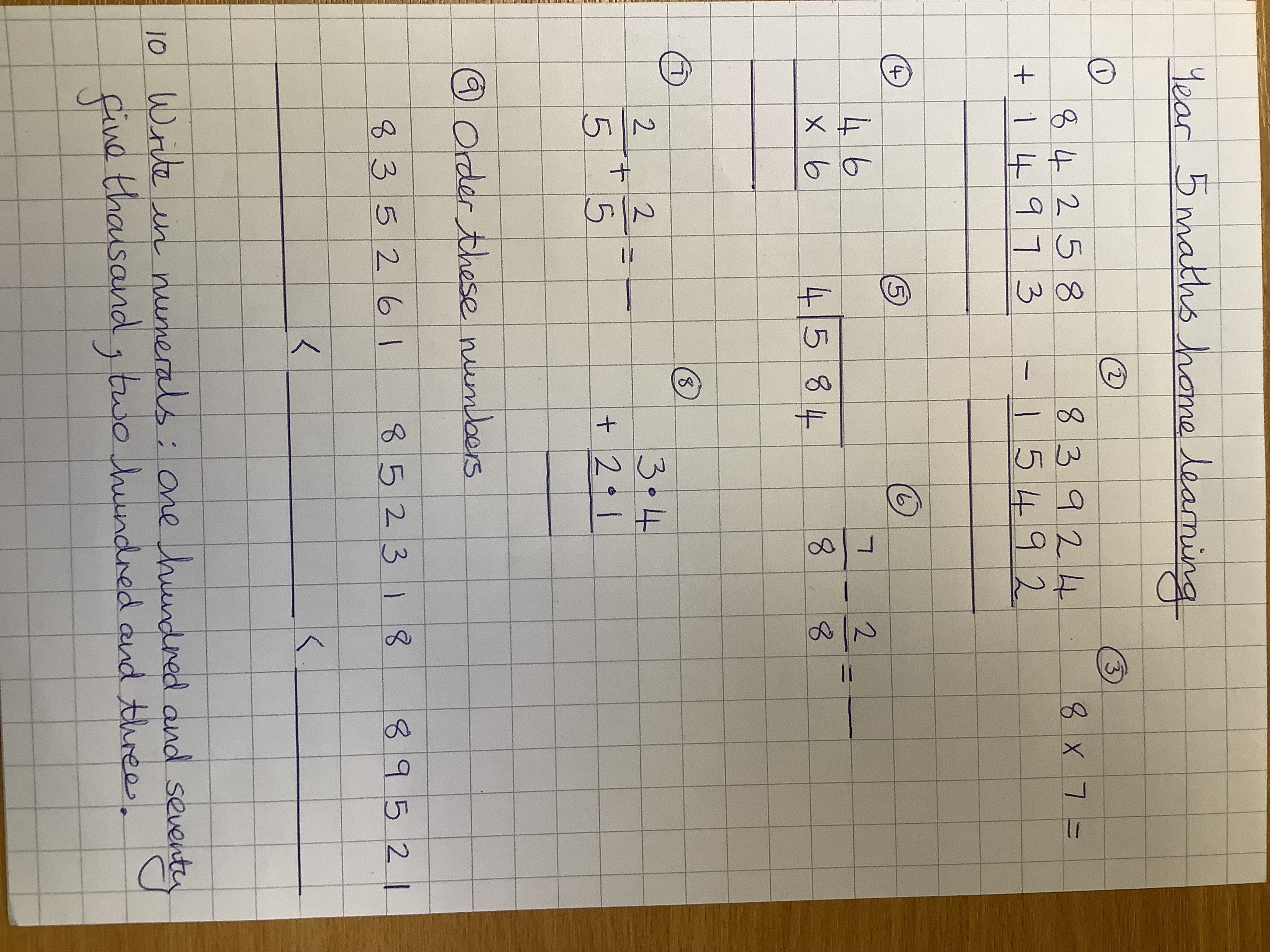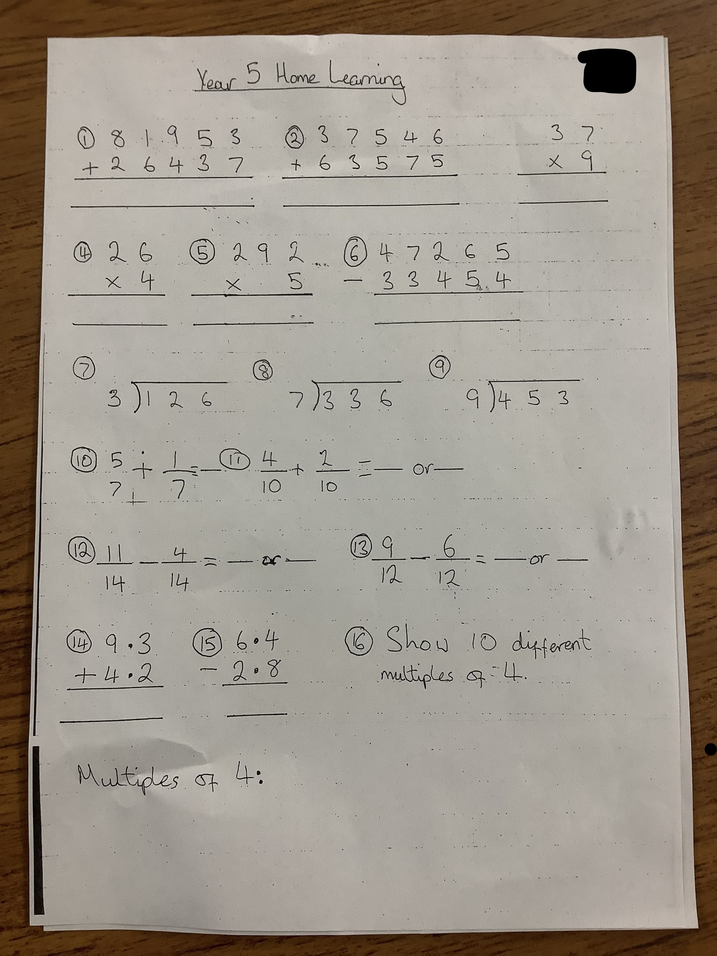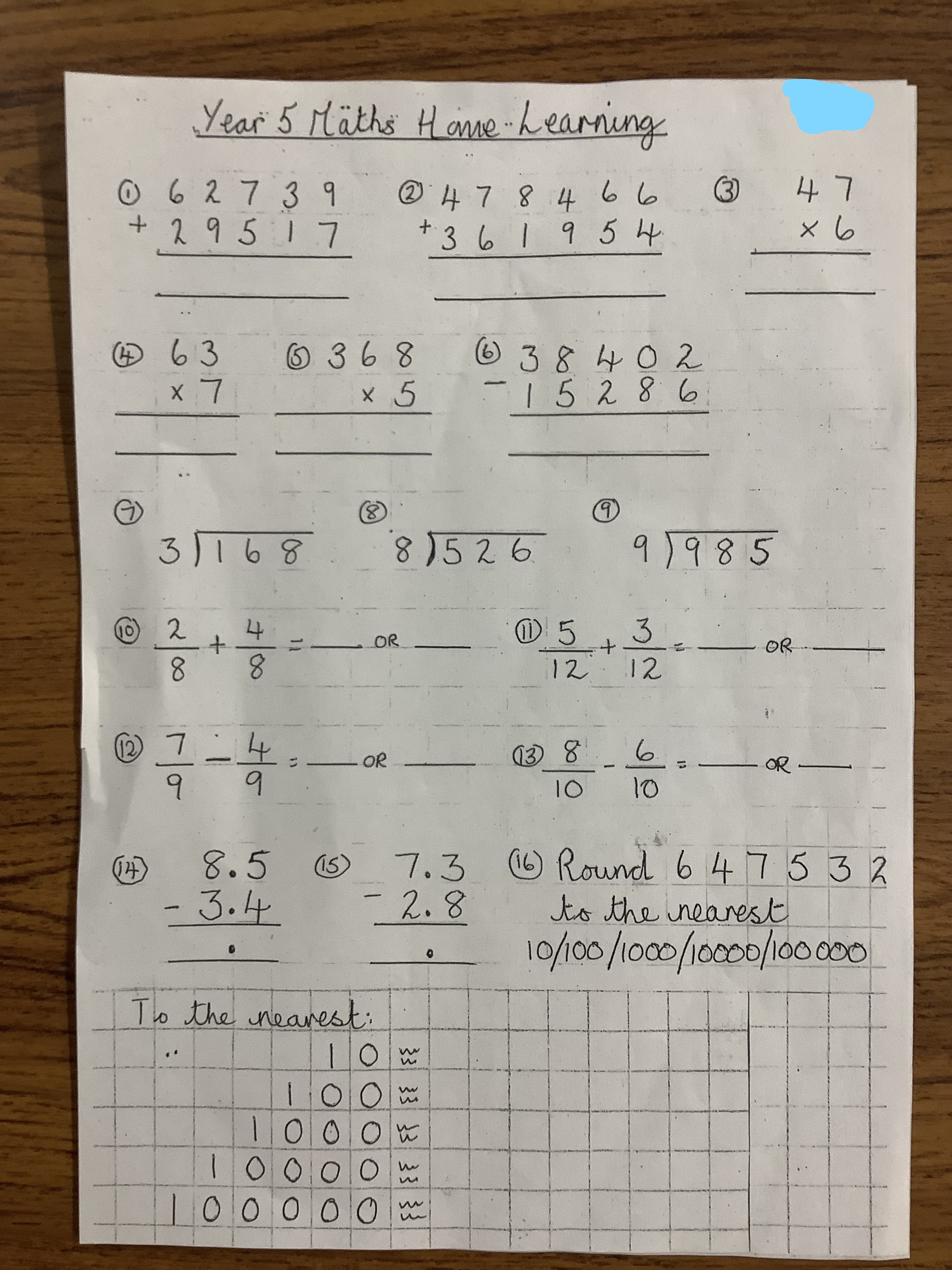 - One piece of maths arithmetic (provided both digitally and as a hard copy)